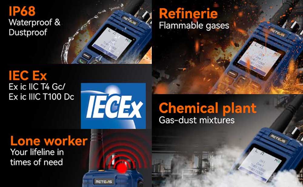 A: Absolutely. Retevis E2 carries both international ATEX certification (Ex ic IIC T4 Gc) and Chinese explosion-proof certification (Ex ib IIB T4 Gb), fully compliant with national standards for chemical plant explosion-proof electrical equipment requirements.