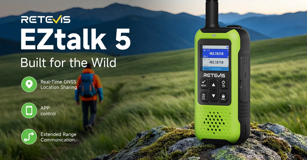 The EZTalk 5 is a GMRS-certified handheld radio designed for family outdoor activities, off-road convoys, and worksite communication.