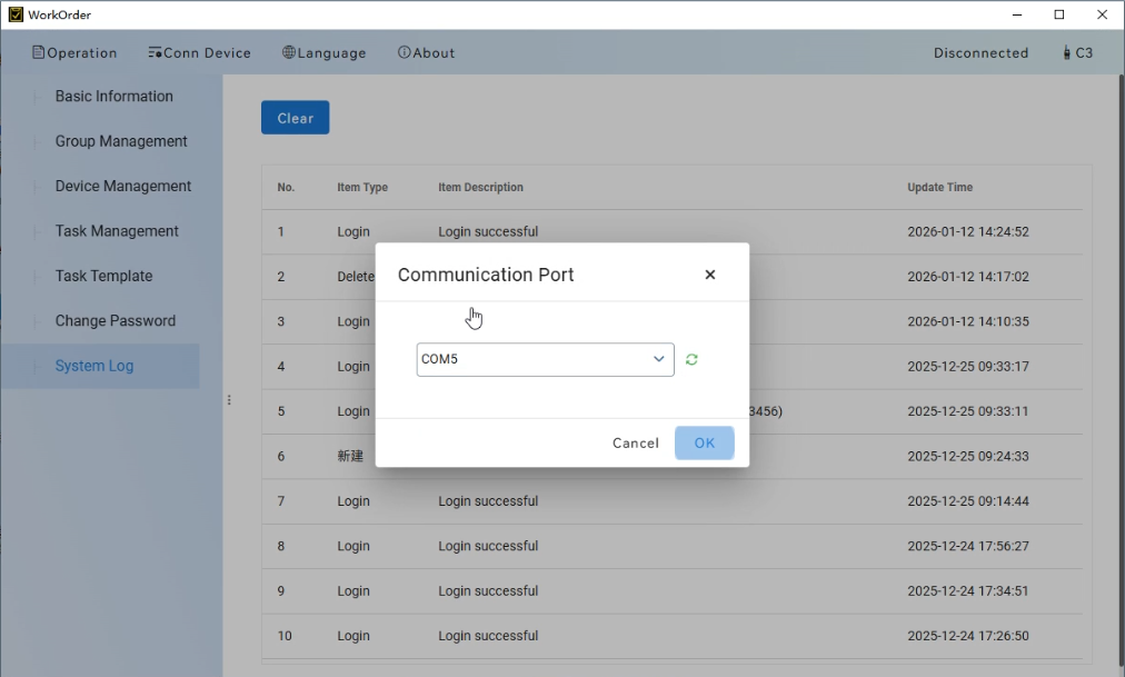 2.Use a Type-C data cable to connect the radio to your computer. Open the work order software.