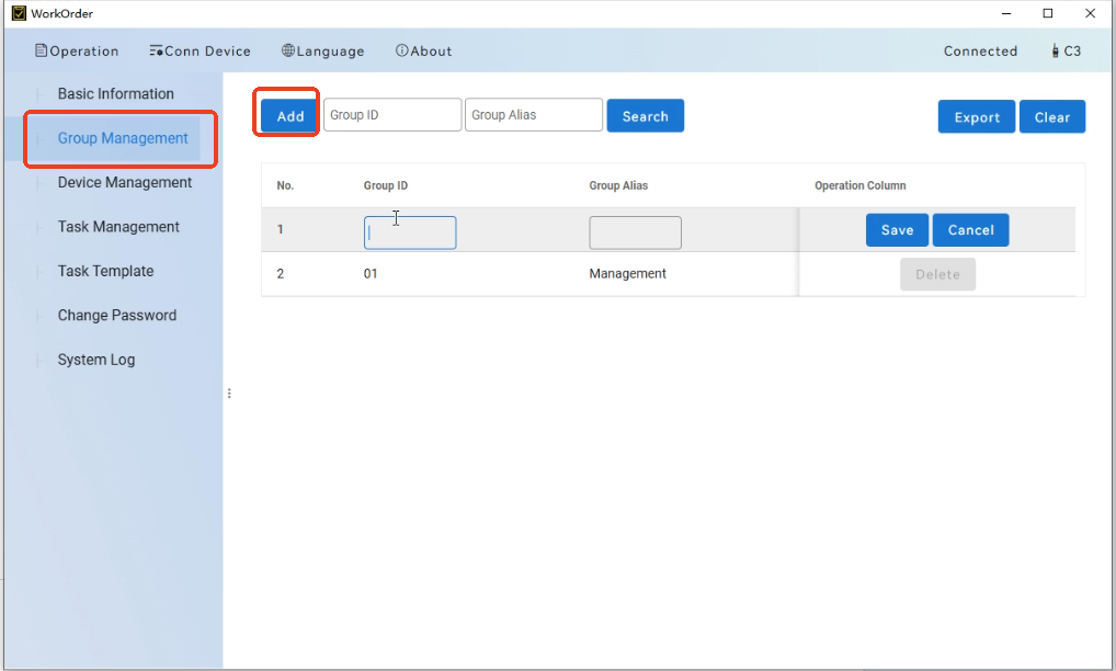 4.In the "Group Management" section, click "Add". Enter the required Group ID and Group Alias.