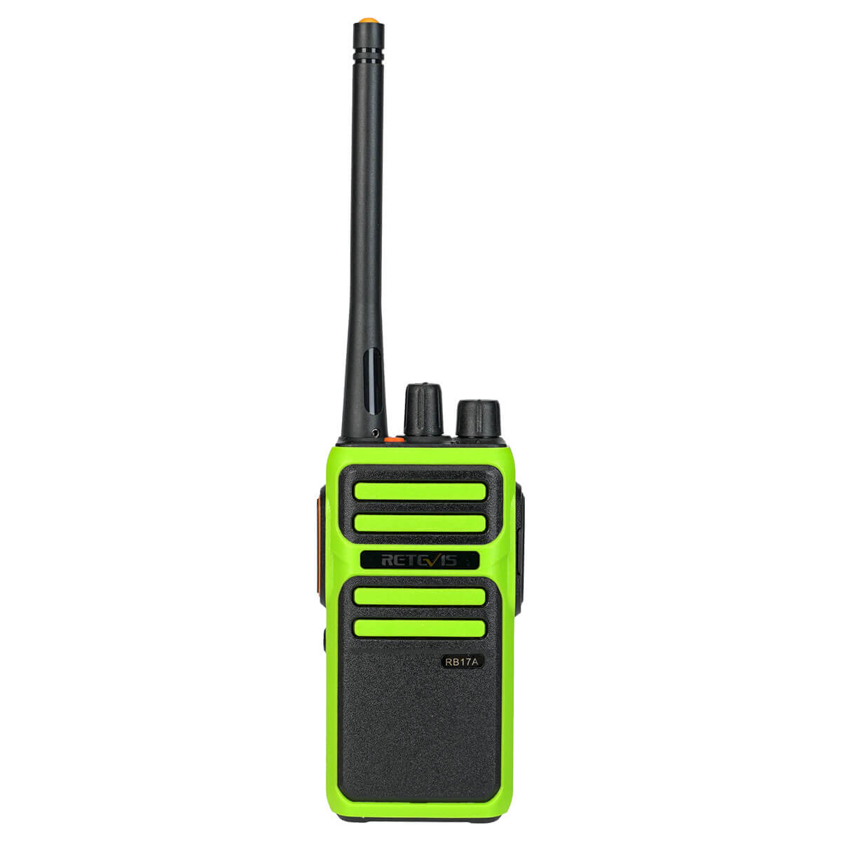 Retevis RB17A is a long range GMRS radio. Sturdy structure, hard shell, drop and pressure resistant. Equipped with 2200mAh high-capacity battery and USB charging interface. Easy to operate, lightweight and portable. Also designed in bright green color for you to discover it better.