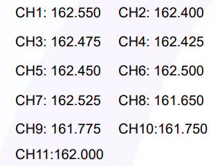 All NOAA Weather Radio stations broadcast on VHF Public Service Band frequencies: