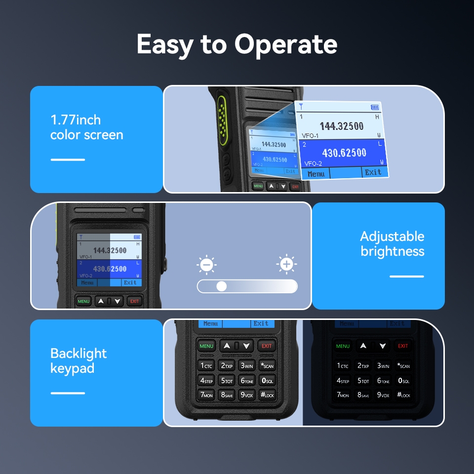 🏕️ UHF/VHF Dual-Band: Stay connected across varied terrains (ideal for forests, mountains, or lakesides).