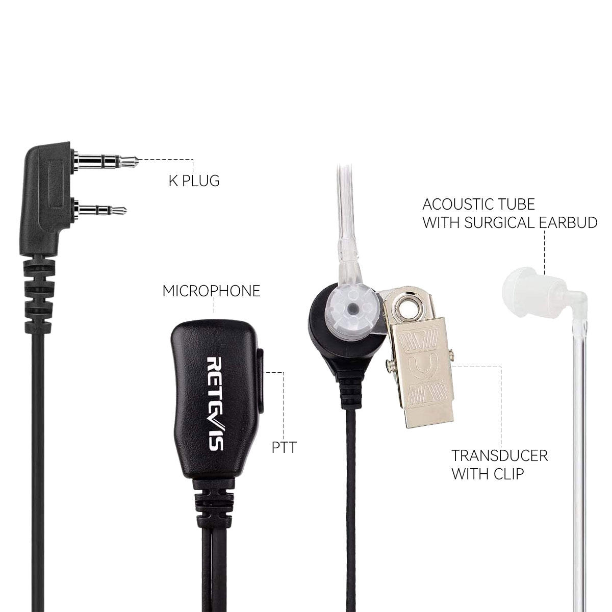 New Retevis Black High Quality 2 Pin PTT MIC Noise Reduction Covert Acoustic Tube In-ear Earpiece Headset for Radio KENWOOD PUXING QUANSHENG TYT HYT BAOFENG BF-UV5R 888S H777