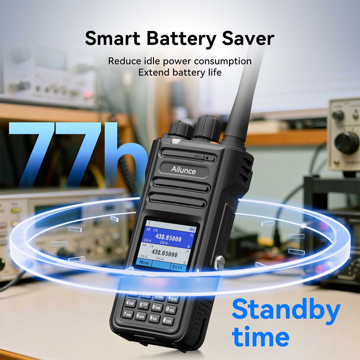Built for endurance, the 2800mAh removable battery keeps your rechargeable two-way radio running with up to 77 hours of standby time. With fast charging in under 4.5 hours and three smart power-saving modes, you stay active longer with zero downtime.