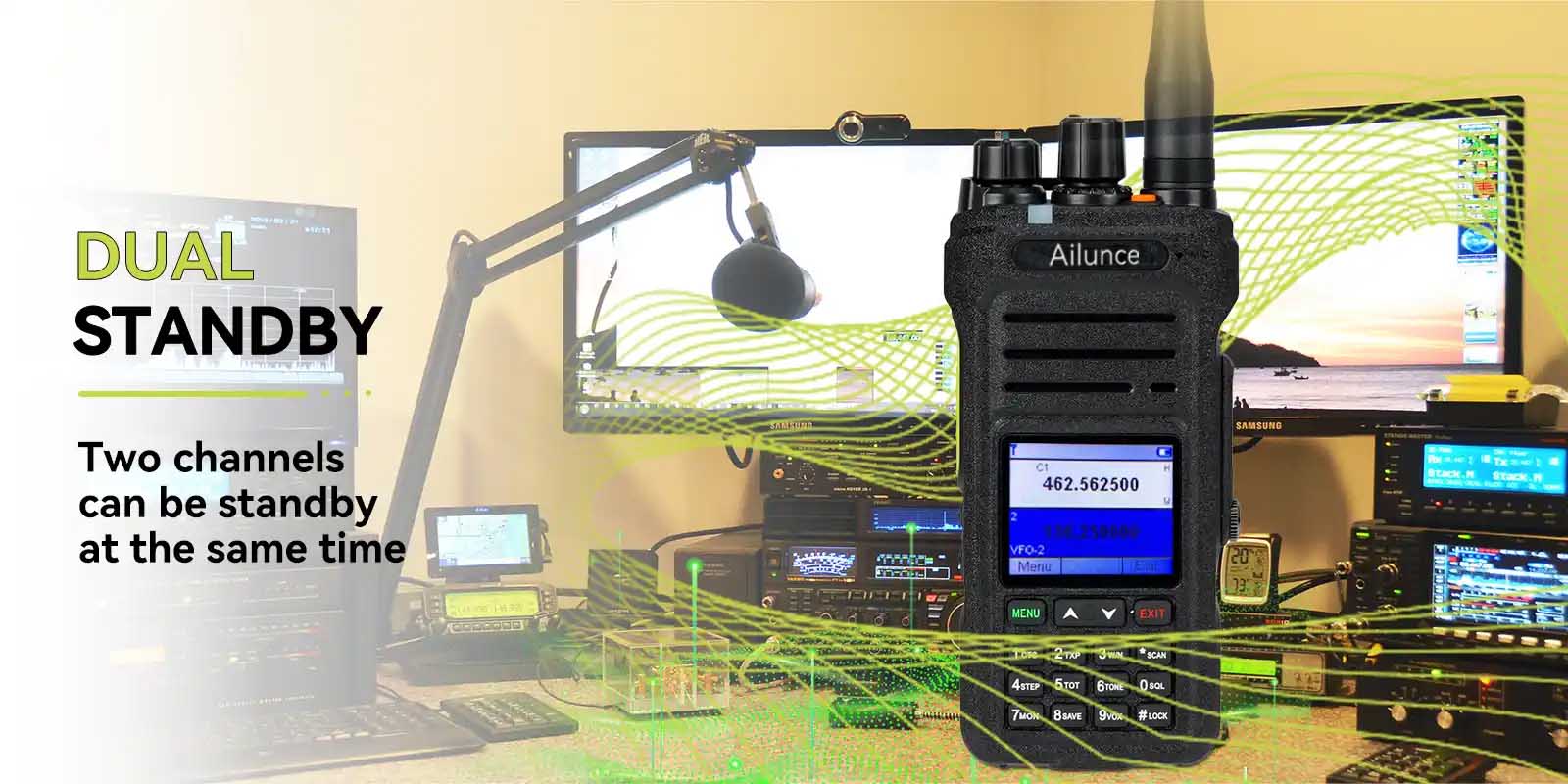 The HA1G GMRS portable radio can be effectively on standby on two channels at the same time, so you will not miss important information. The HA1G amateur radio has a dual frequency reception function, which allows you to receive on two channels at the same time, suitable for use between teams.