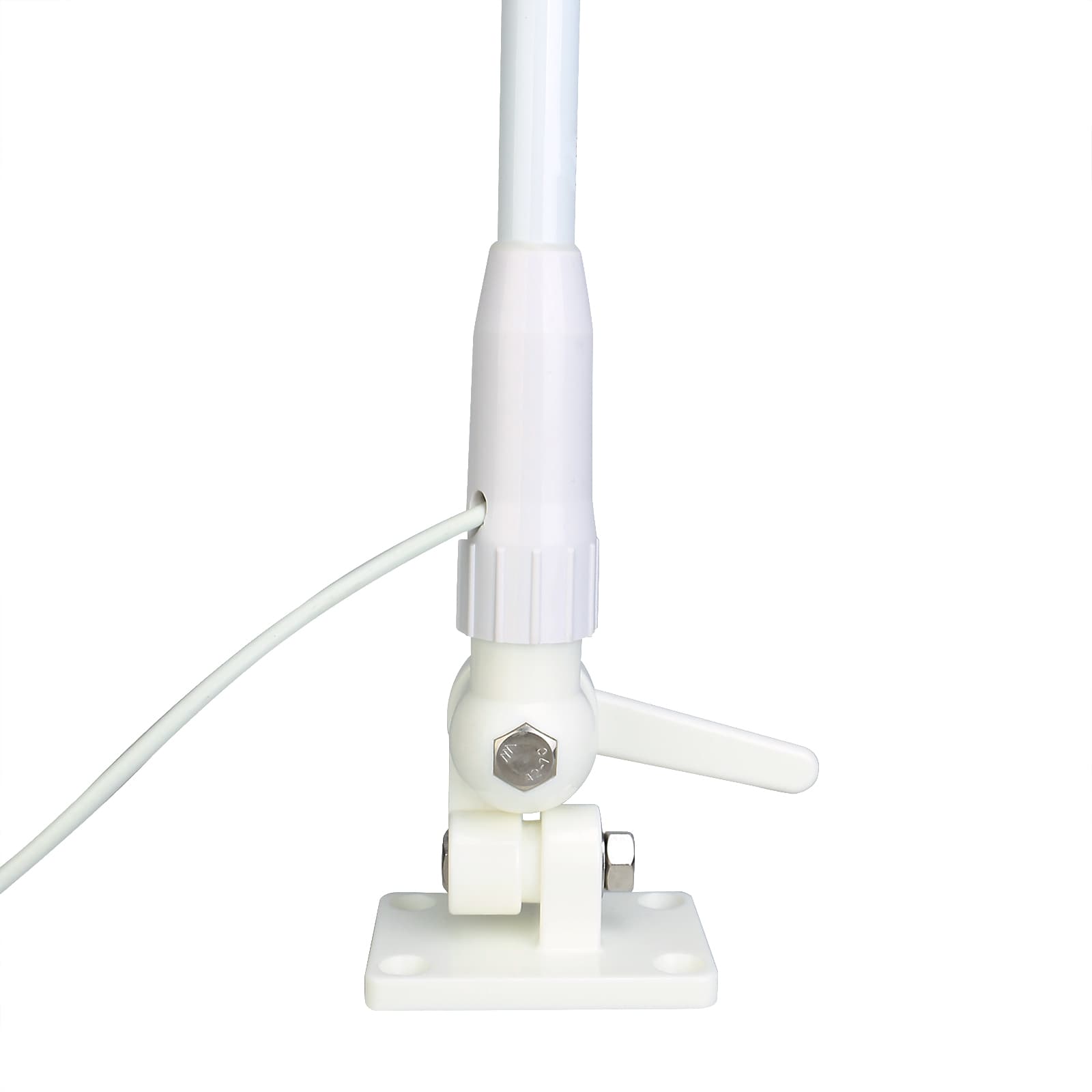 The special antenna for ship platform is encapsulated in glass fiber reinforced plastic, waterproof, and corrosion resistant; contains pure copper vibrator, has a long communication distance, is equipped with an adjustable fixed base, and can adjust the antenna angle by 180°; includes all maritime frequency bands and can be installed on the ship or outdoors.