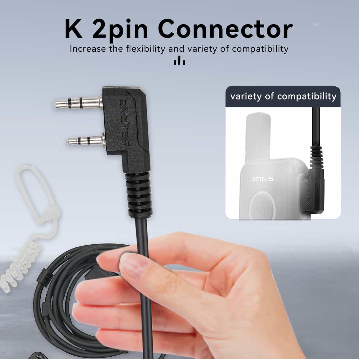 K 2pin connector suits K 2pin walkie talkies, M 2pin connector suits M 2pin walkie talkies, and GP328Plus suits multi-pin walkie talkies, regardless of the walkie talkie models, you can find the suitable earpiece to use at work.