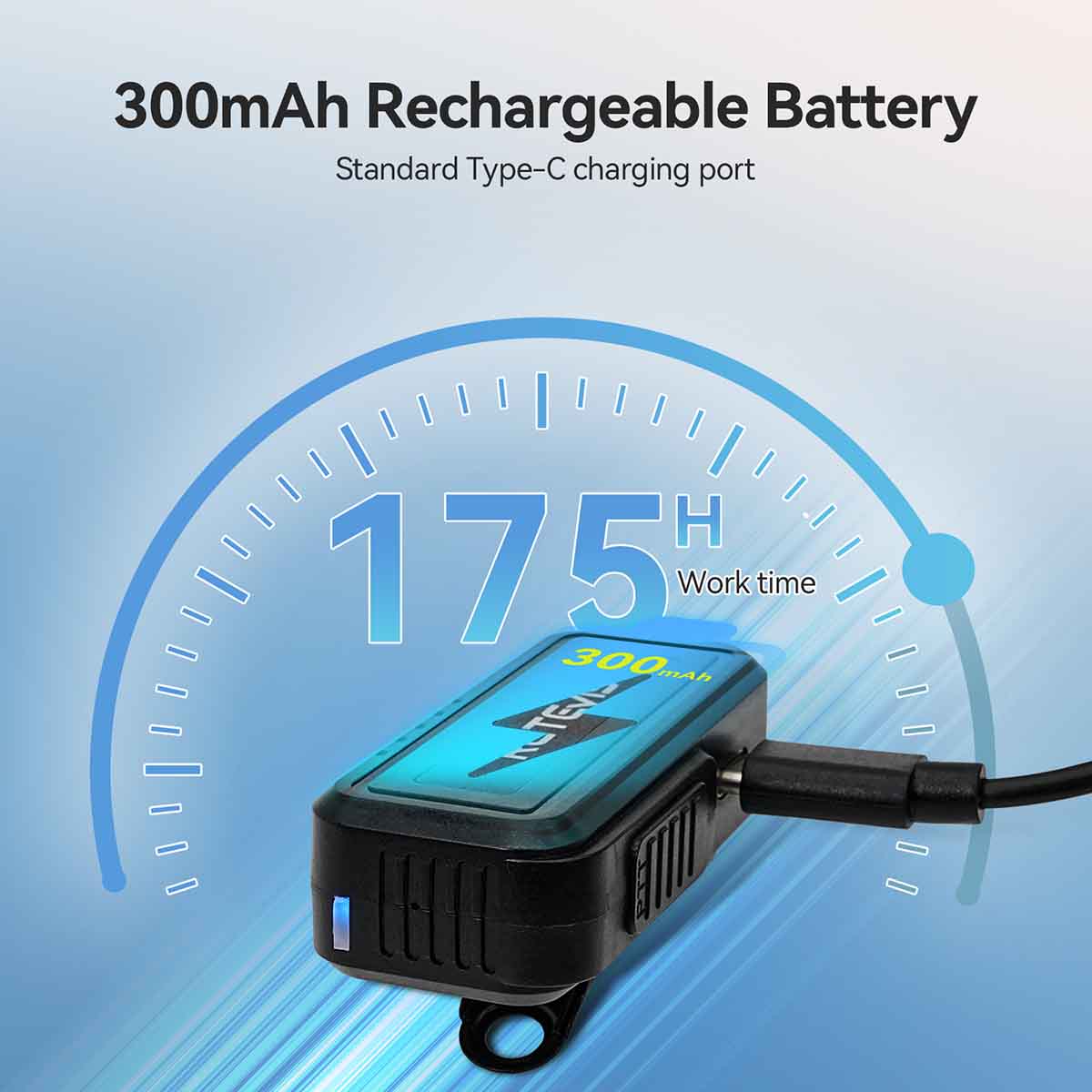 300mAh battery allows for using the radio earpiece for up to 175 hours without frequent charging.