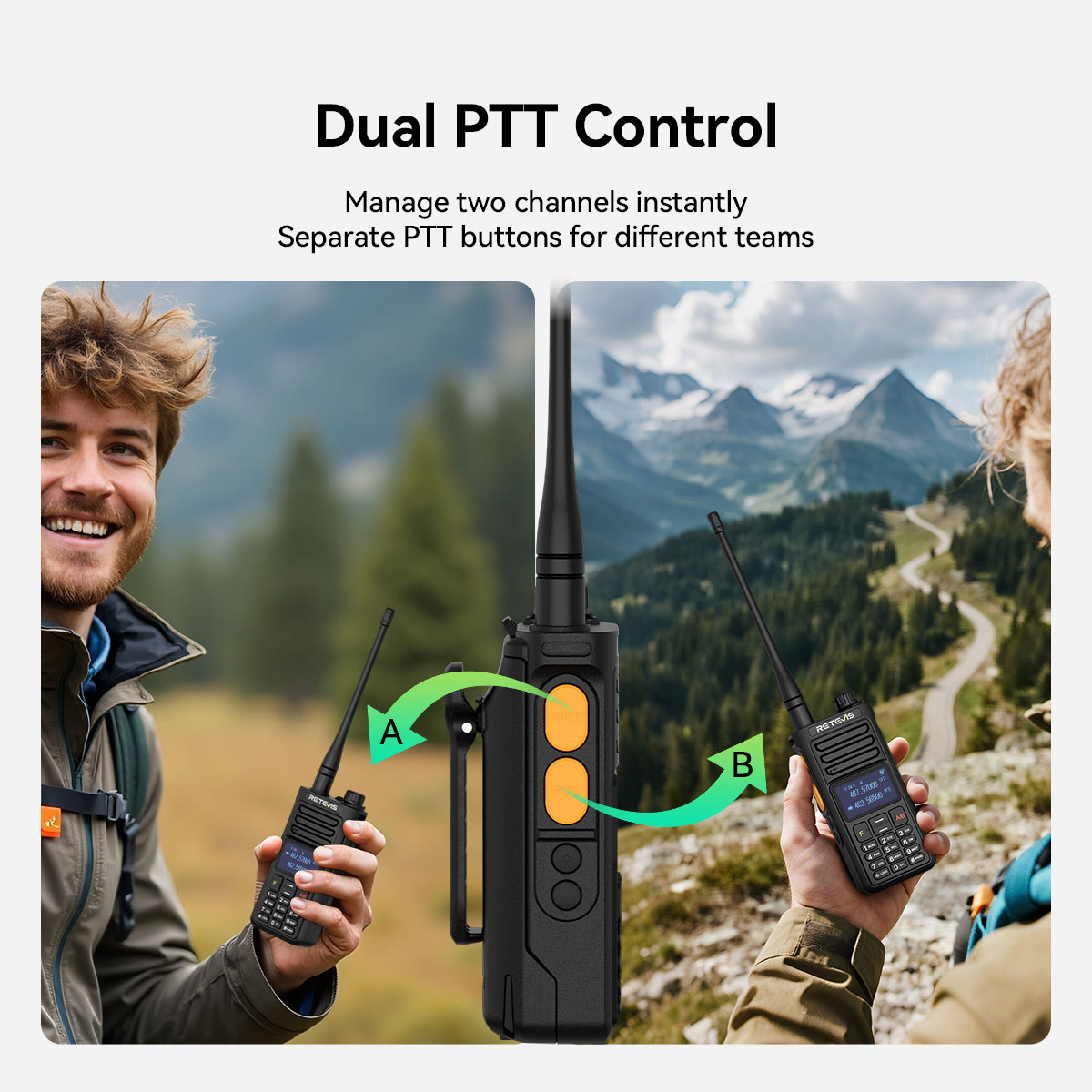Take command of complex operations with two independent Push-to-Talk buttons. Each button can be assigned to control a separate channel, frequency, or team. This allows you to communicate with two different groups simultaneously and without menu delays. The design provides instant, flexible response for coordinated efforts, making it ideal for events, expeditions, or any scenario where managing multiple lines of communication is critical.