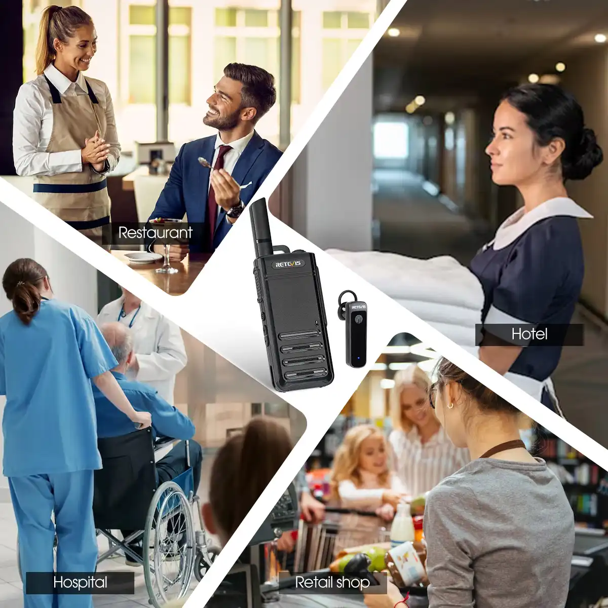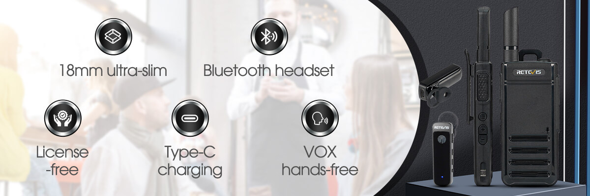 Retevis RB639P ultra-thin Bluetooth license-free Radio 10 pack with 10-way charger, ultra-thin design, built-in Bluetooth function, one-click charging is more convenient. Suitable for team work in high-end restaurants, dental hospitals, hotels, retail stores, kindergartens, etc.