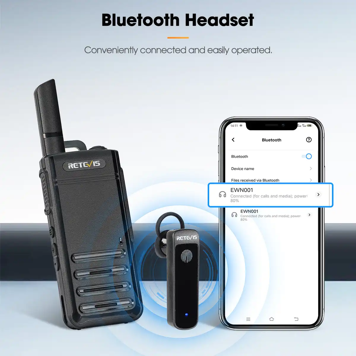RB639P comes with a newest Bluetooth headset, and the built-in Bluetooth functionality is convenient. The side keys can be customized to turn on and off the Bluetooth pairing function. The bluetooth headset can be compatible with other bluetooth devices.