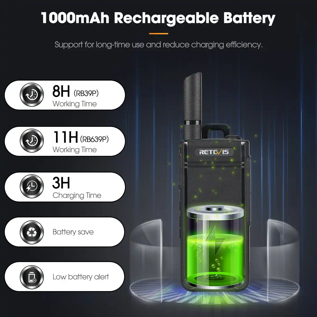 RB639P only takes 3 hours to fully charge and can be used for up to 11 hours.