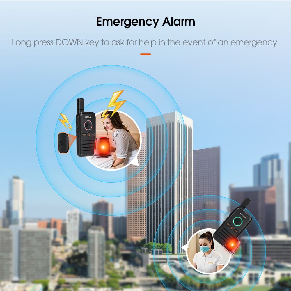 The walkie talkie's body is made from sturdy and long-lasting ABS material, making it ideal for various outdoor adventures as well as for use in restaurants, medical settings, or commercial environments.