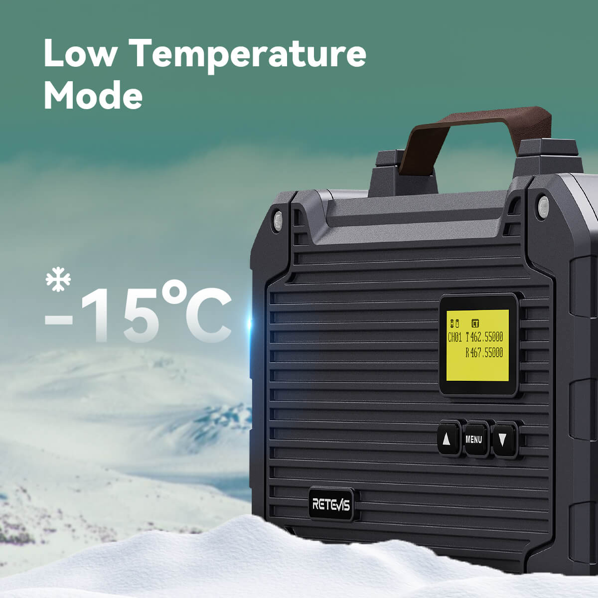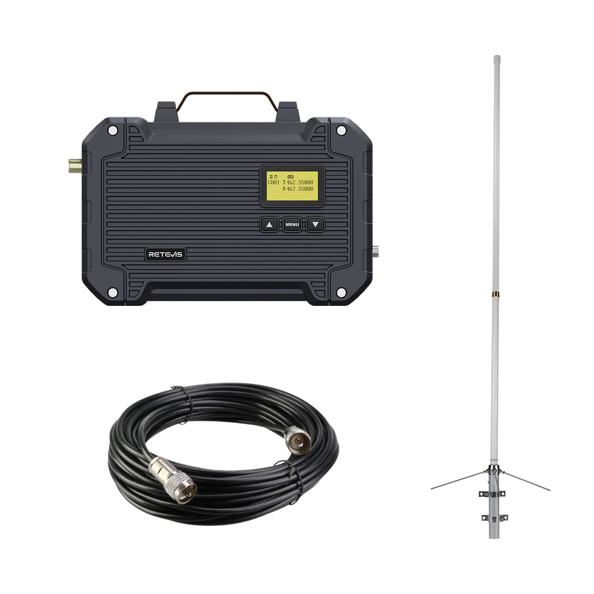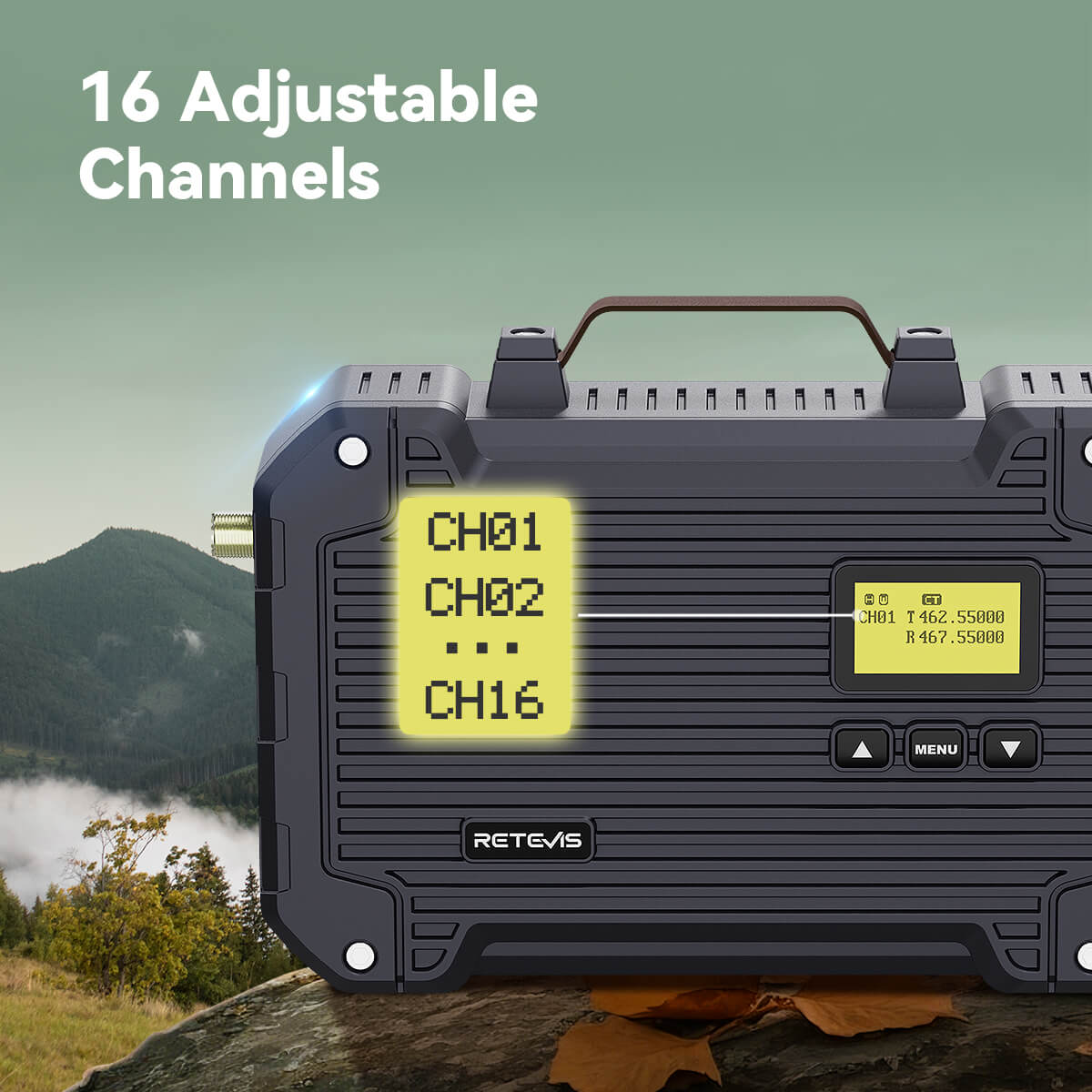 This complete system solves these challenges by combining a powerful 25W GMRS repeater with two rugged 10W heavy-duty walkie-talkies. The RT97L repeater sits at the heart of your network, receiving and rebroadcasting signals with strong penetrating power that cuts through concrete, steel, and multi-story structures. Whether your team is spread across a sprawling construction site, inside a multi-level manufacturing facility, or working in remote areas of a large industrial complex, every member stays connected with crystal-clear audio.