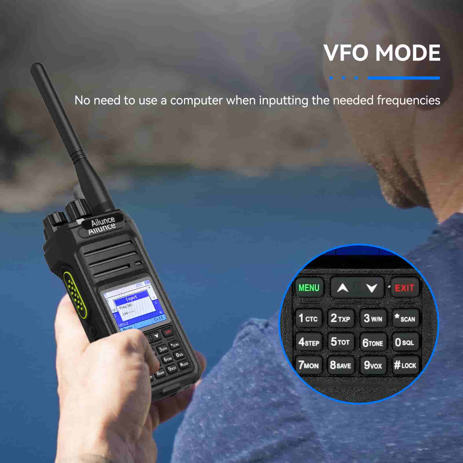 The transceiver of the Ailunce HA1UV amateur radio provides a VFO mode, allowing you to manually enter the frequency, so you don’t have to carry a computer with you all the time, especially in outdoor activities