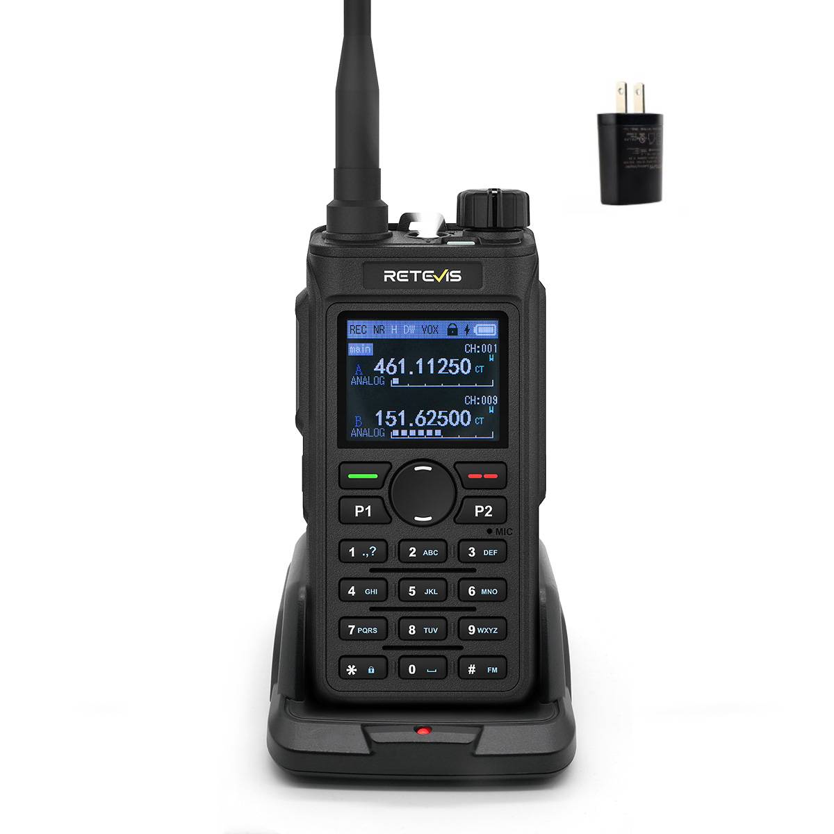 Retevis C62 high power 2-way radio is available for personal, warehouses, schools, and other various occasions use. 5W power has strong transmission power and achieves longer calling distance. Group call and easy pairing functions increase teamwork communication and cooperation ability. Full keyboard, 1.77inch LCD screen, and 5-level adjustable brightness make walkie talkie easy to operate. 10-level AI two-way noise reduction eliminates the noise and offers a clearer sound to communicate. Dual-band/watch improves reception compatibility. 2000mAh battery and two charging methods extend the work time conveniently. VOX, emergency alarm, and other function allows you to operate the 2-way radio conveniently and securely during use. C62 will be your good partner for use on various occasions.