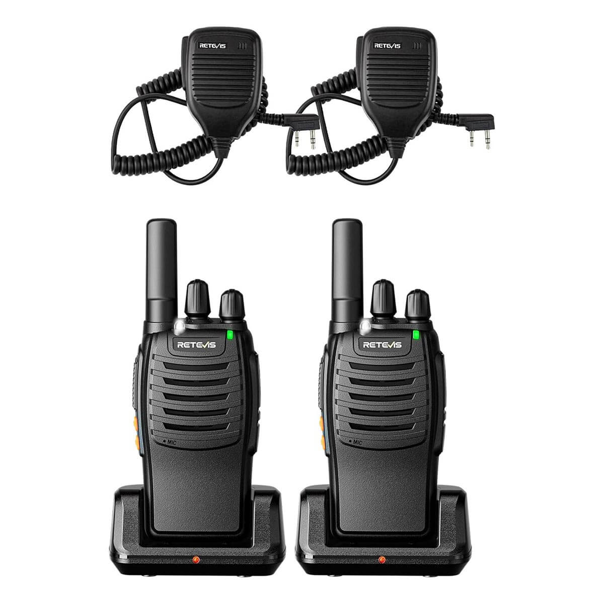 This upgraded H777 FRS walkie talkies can work with the last version of H777 FRS radios and are compatible with their accessories such as belt clip, earpieces, speaker microphones and six-way chargers, increasing the flexibility of use.