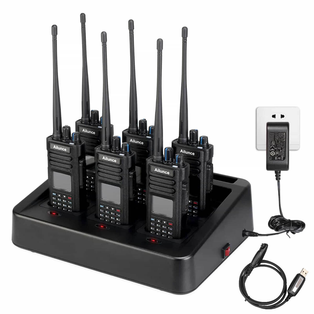 Retevis HD2 6 Pack + 6-way charger + waterproof microphone 6 Pack. HD2 is a digital walkie-talkie with long-distance, high-quality communication, supporting TYPE-C charging and one-stop charging. Suitable for outdoor activities, field travel, emergency rescue communications, outdoor stand and handheld communication.
