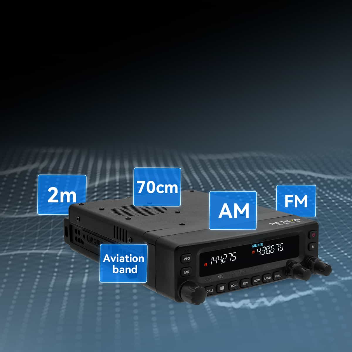 The Retevis MA1 amateur radio transceiver supports multi-band reception, provides extended receiver coverage beyond the Amateur bands, so you can keep informed of communication activities in the public safety, commercial, aircraft, and government communications ranges. including 2m, 70cm, FM, AM and air band frequencies. Retevis MA1 will provide you with a wider range of communications information when your phone loses signal.