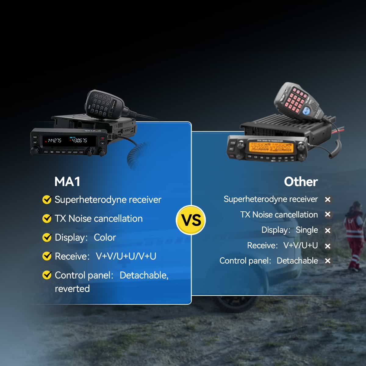 The Retevis MA1 is a long-range ham radio with a powerful 50W(UHF) /40W(VHF) TX power that can provide a stable signal; when traveling or in emergency rescue, MA1 can achieve smooth long-distance communication no matter how far away the members are.