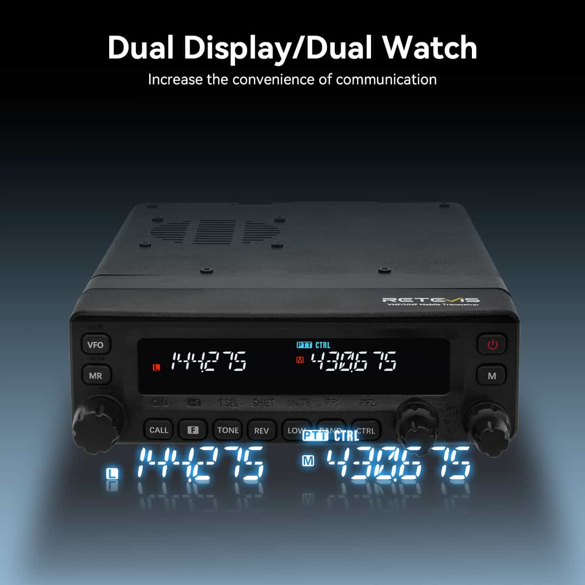 The Retevis MA1 dual band ham radio can display and view both 2m and 70cm frequencies simultaneously, increasing communication flexibility and efficiency