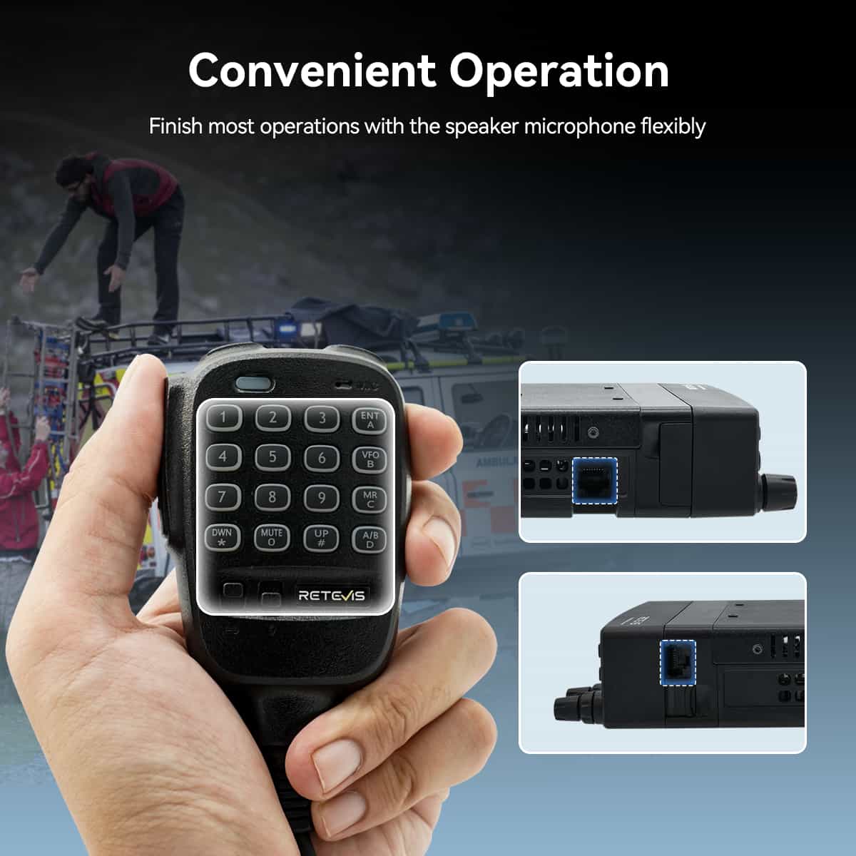 For emergency work or to extend the range of a handheld, the Retevis MA1 adds cross-band relay, allowing transmissions at long range to ensure consistent communications. When used with a handheld, it helps you extend your range and communicate smoothly with workers at long distances.