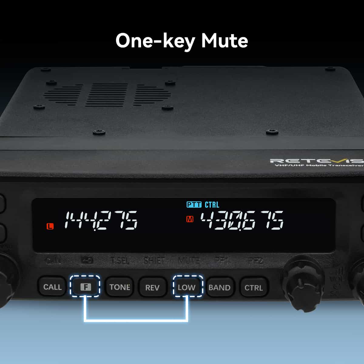 One-touch mute helps you quickly turn off the volume of the amateur radio; when you need to talk to others, you can long press the mute button to mute (long press the mute button again to cancel the mute)