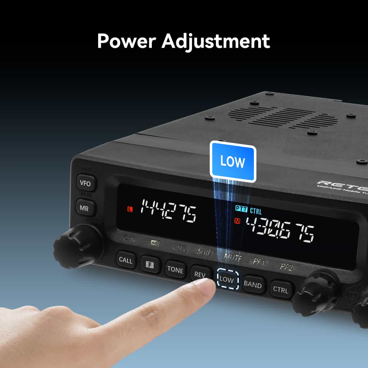 Output power: VHF:50W/20W/5W; UHF:40W/20W/5W