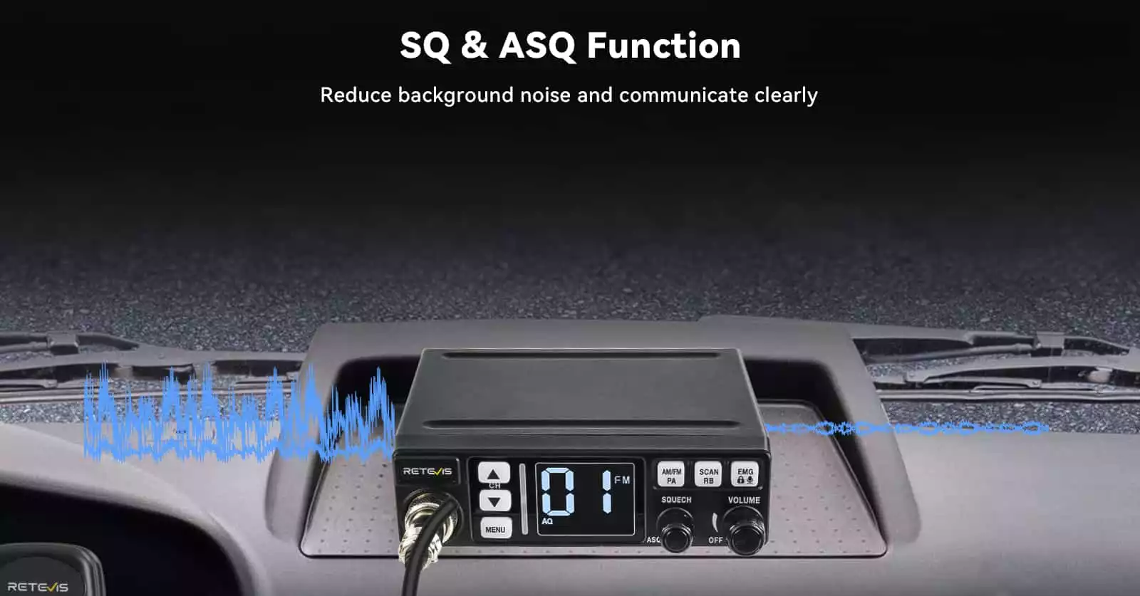 The Retevis MB3 CB car radio features SQ and ASQ two squelch modes, which reduce background noise and offer clear transmission and reception. So drivers communicate clearly in noisy road conditions.
