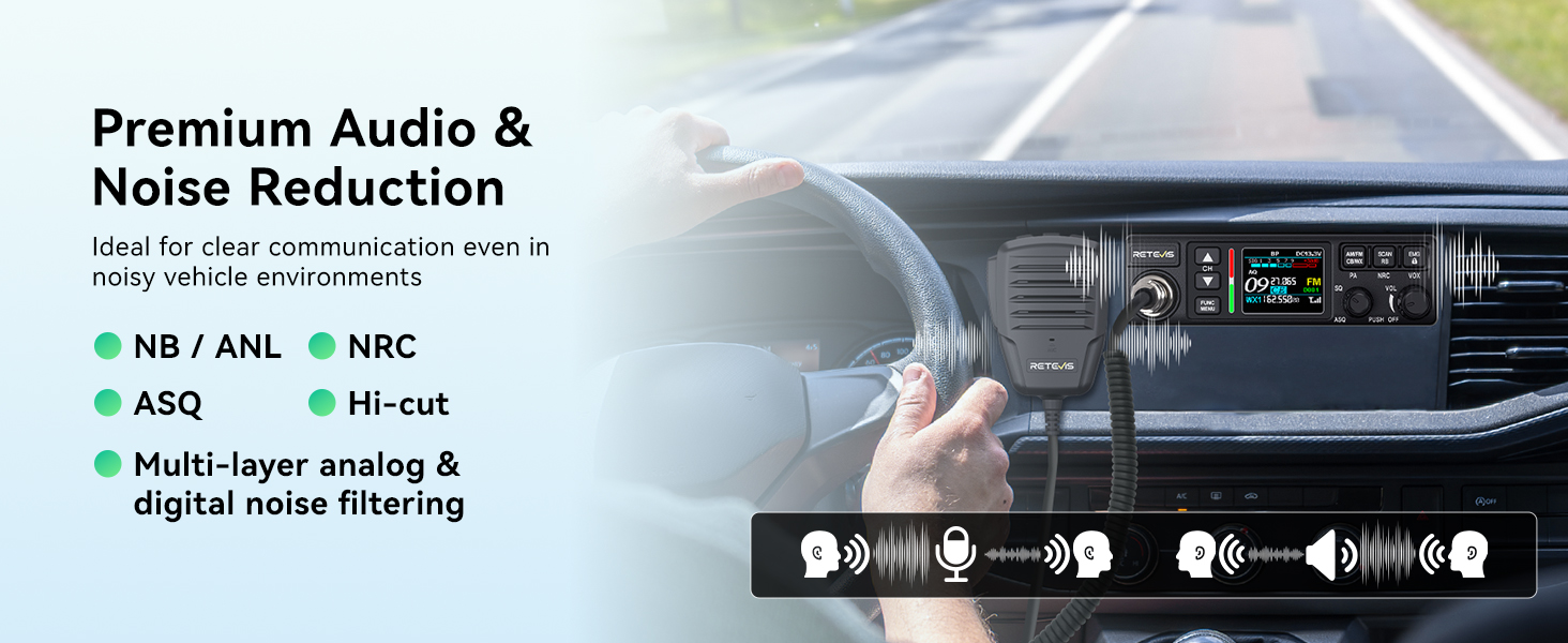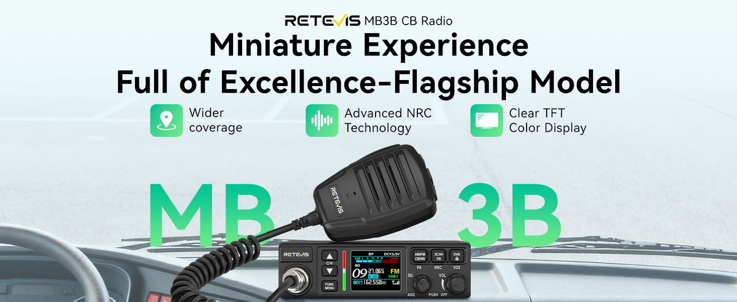 The Retevis MB3B is a flagship dual-mode AM/FM CB mobile radio that combines compact design with exceptional performance. Specifically engineered for truck drivers, logistics transportation, and long-distance travel, the MB3B delivers clear and reliable communication in any road condition thanks to its wider signal coverage and advanced NRC noise reduction technology. With its signature color TFT screen and intuitive operation, it ensures every driver enjoys a professional and efficient communication experience throughout their journey.