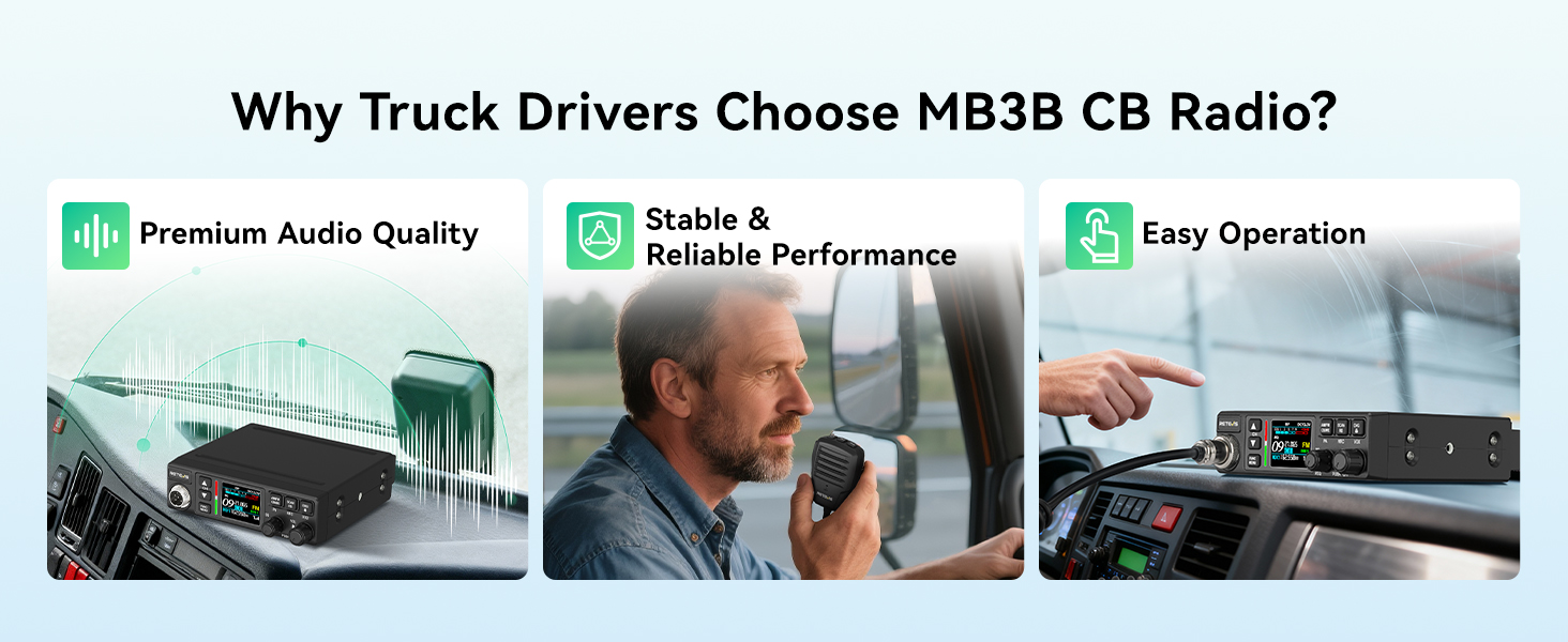 For transport companies and drivers, the MB3B is an extremely practical choice. It complies with CB radio license-free standards, meaning there are no tedious certification processes, no extensive paperwork, and no steep learning curves. It is ready to use right out of the box, making team communication deployment simple and efficient.