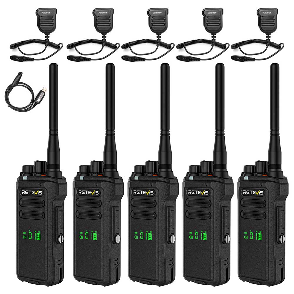 Retevis NR30D AES256 encrypted noise reduction DMR Radio with speak mic delivers powerful communication performance for busy teams. Designed for clear, noise-free audio and reliable long-range coverage, it ensures smooth coordination in construction, logistics, music festivals, logistics, schools, security, or event management. The included mic allows hands-free operation, keeping your focus on the job and improving overall productivity.
