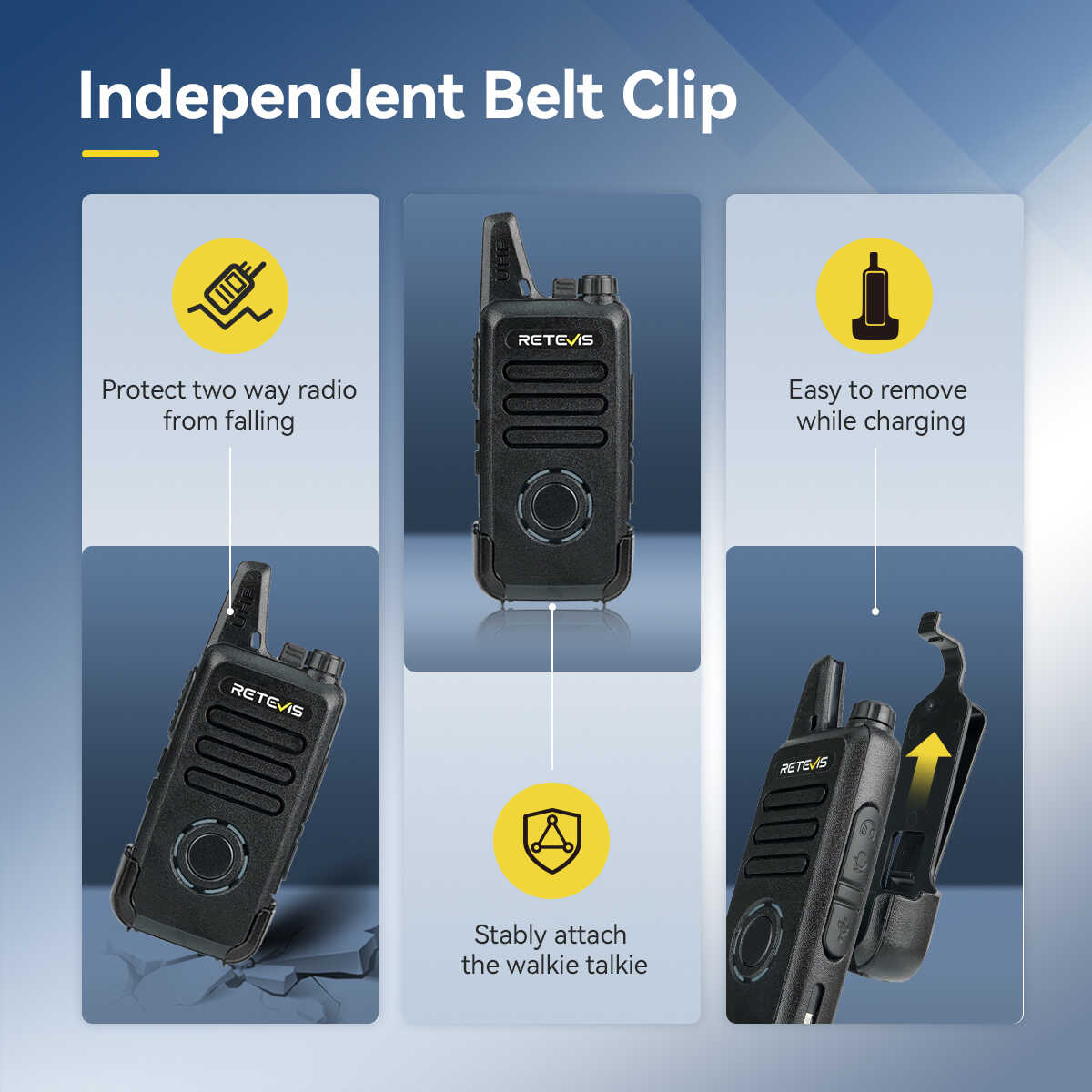 The RT22S walkie talkie is sturdy and resistant to drops, and the ergonomically designed belt clip is sturdy and durable. It can be quickly installed when in use and can be easily disassembled when not in use.