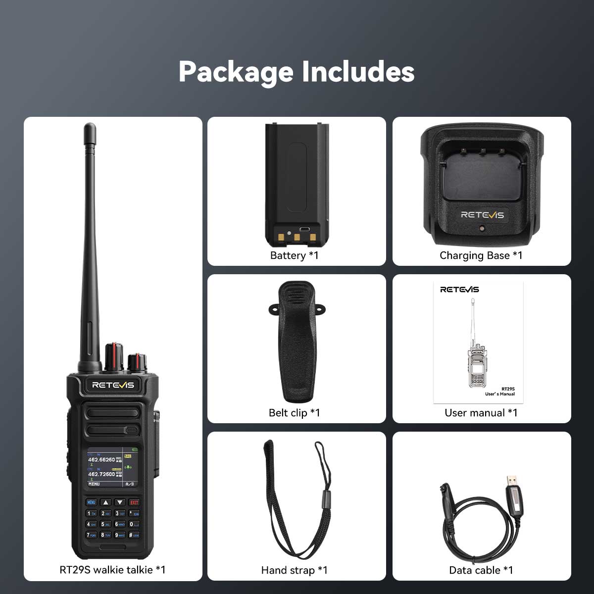 Retevis RT29S 10W high power long-range two-way radio delivers robust performance, clear audio, and durable construction. Right for rescue, industrial, construction, security, and logistics teams needing dependable radios. There are two versions for your choice: GMRS and UV dual band.
