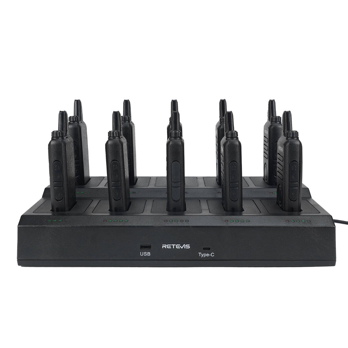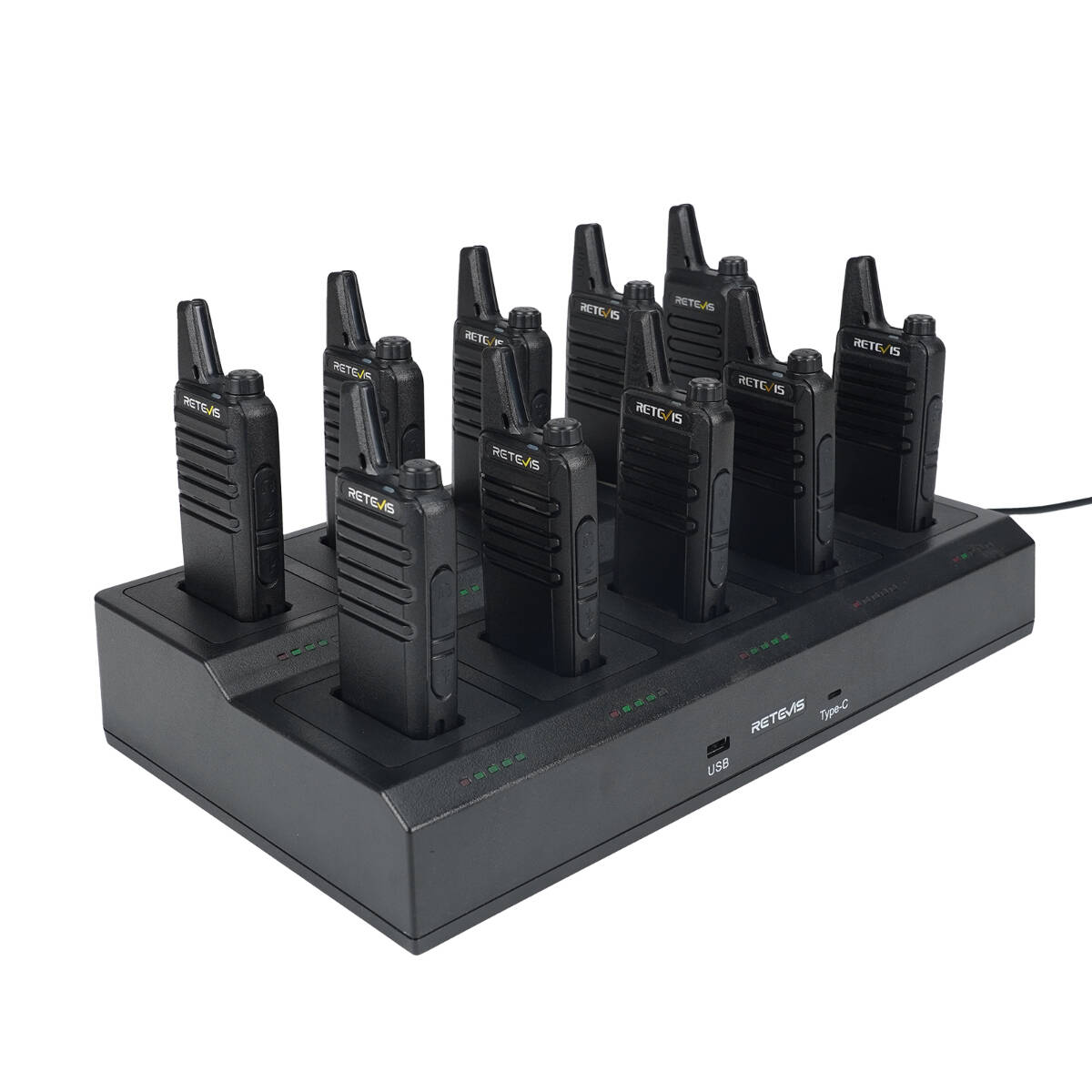 This set comes with 2 ten-way chargers that can charge 20 RT622 walkie talkies simultaneously, which is very suitable and efficient for your employees. The 10-way chargers support AC and DC power supplies. It is convenient to recharge two way radios indoors and outdoors.