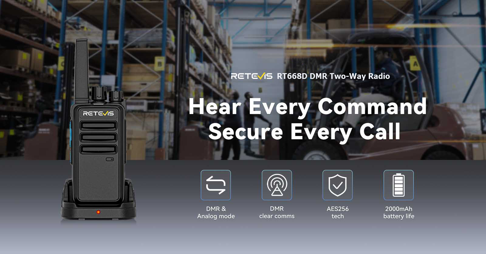 Retevis RT668D digital 2 way radio combines digital clarity, analog compatibility, long-lasting battery, secure protection, rugged design, and versatile features. Schools, warehouses, hotels, and retail stores all benefit from improved efficiency, safety, and reliability. Whether it is structured channels