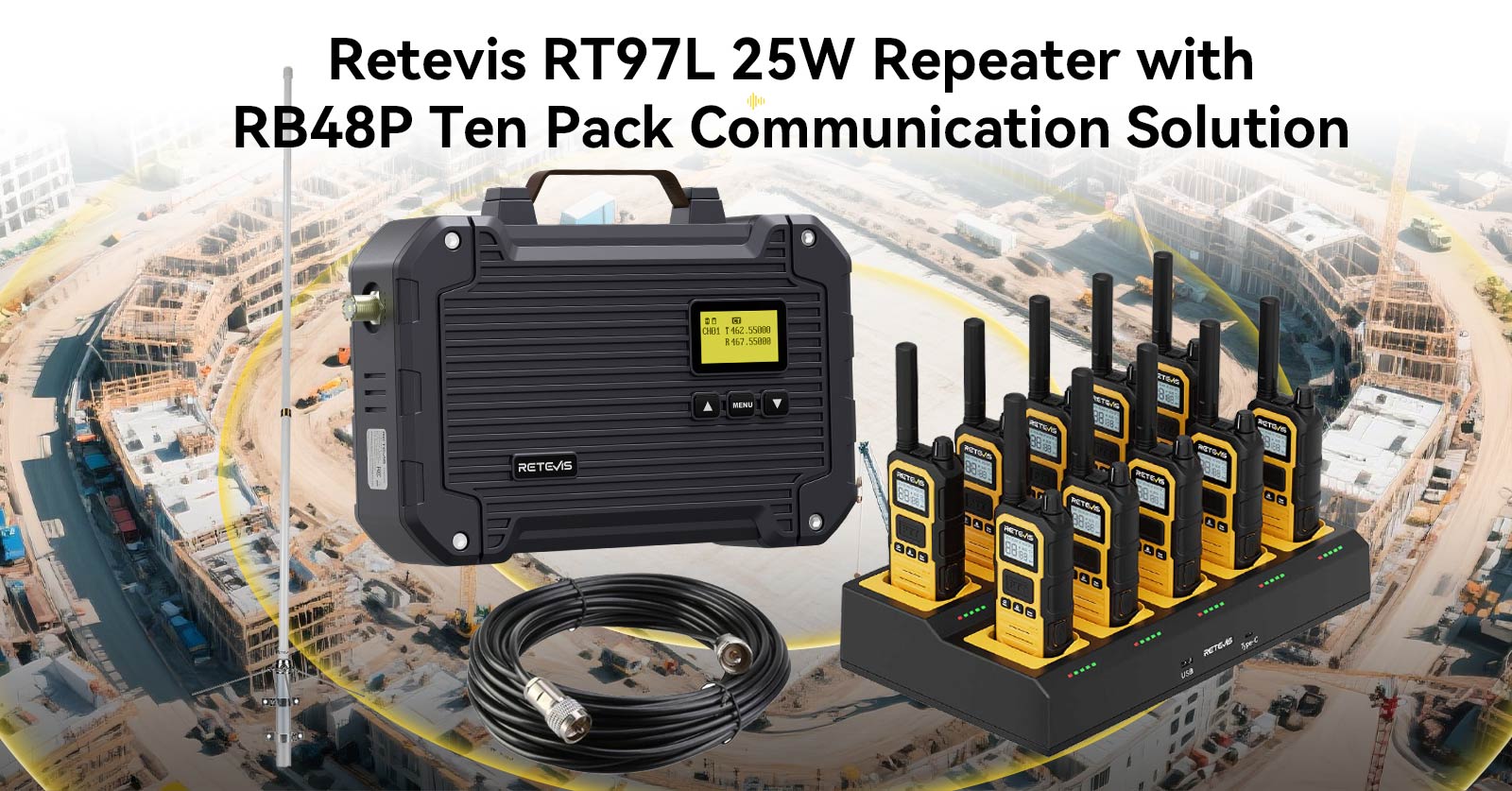 This powerful combination includes the Retevis RT97L portable repeater and a pack of 10 RB48P/648P handheld walkie-talkies, along with a convenient 10-way charging station. The RT97L repeater boosts communication range significantly, allowing you to expand coverage across a larger area, making it an ideal solution for emergency preparedness, construction sites, and horticultural nurseries. Whether you’re managing a team on a building project or coordinating efforts in a garden center, this bundle ensures clear and reliable communication. With the 10-way charger, keeping your radios powered up and ready for use has never been easier, helping you stay connected when it matters most.