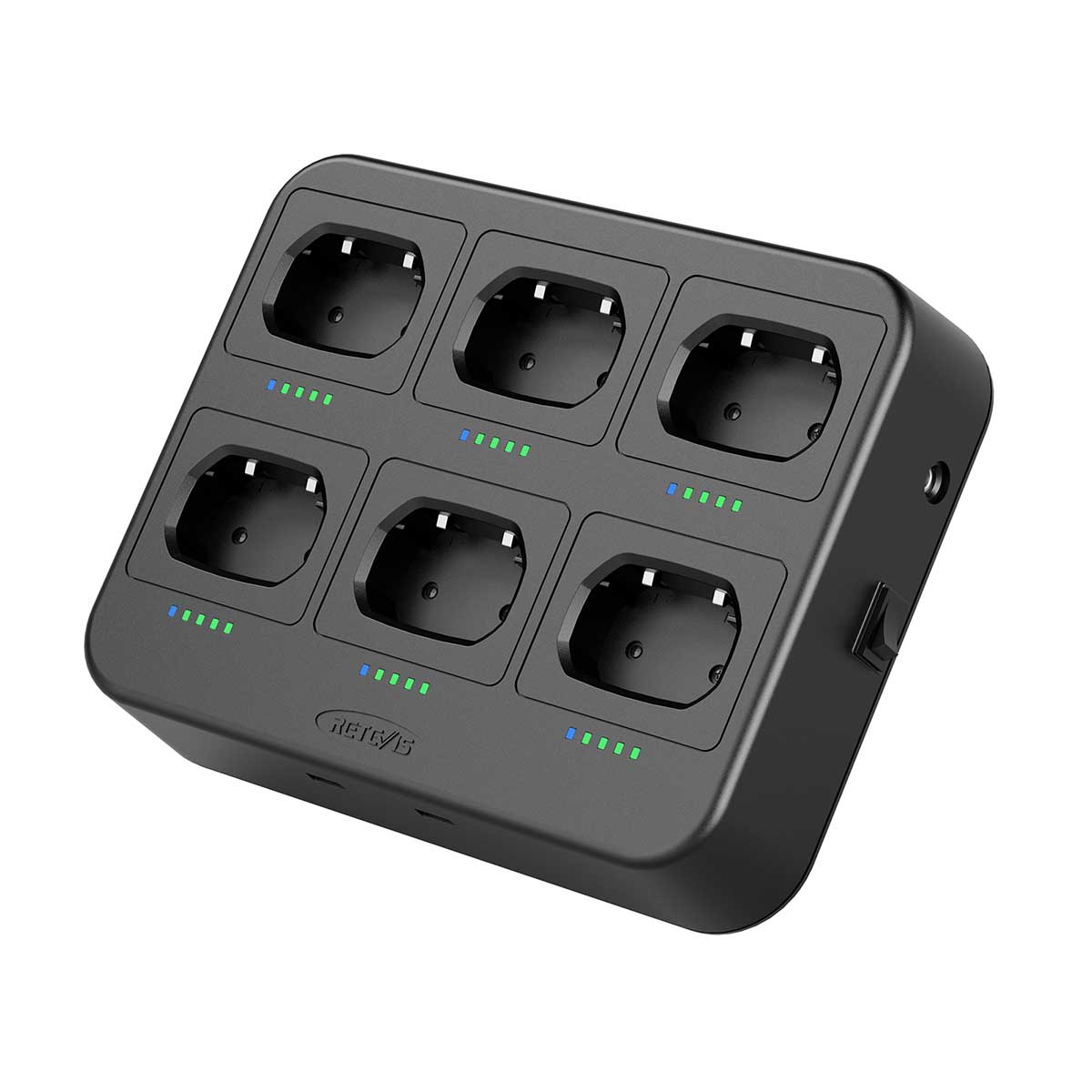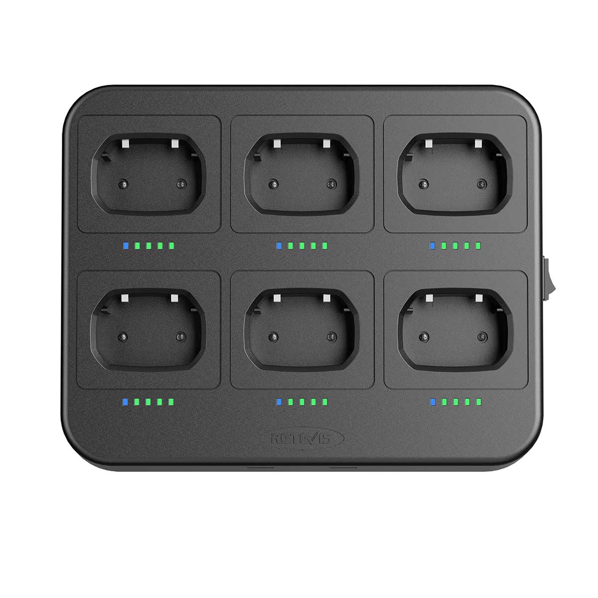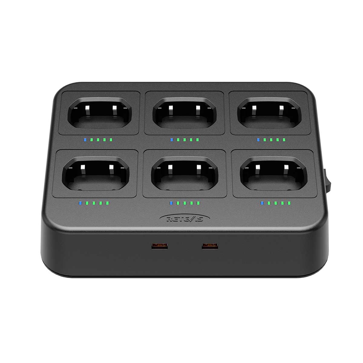 Retevis RTC4 Six-Way Charger is a compact and reliable charging solution designed for Matetalk B4 and B64 two-way radios. It supports simultaneous charging of up to six radios, with independent LED indicators showing real-time charging status. Featuring removable charging cups, dual USB ports for additional devices, and support for both AC and DC power, the RTC4 is ideal for team operations. Built-in safety protections and a durable design ensure stable, long-term performance in professional environments.