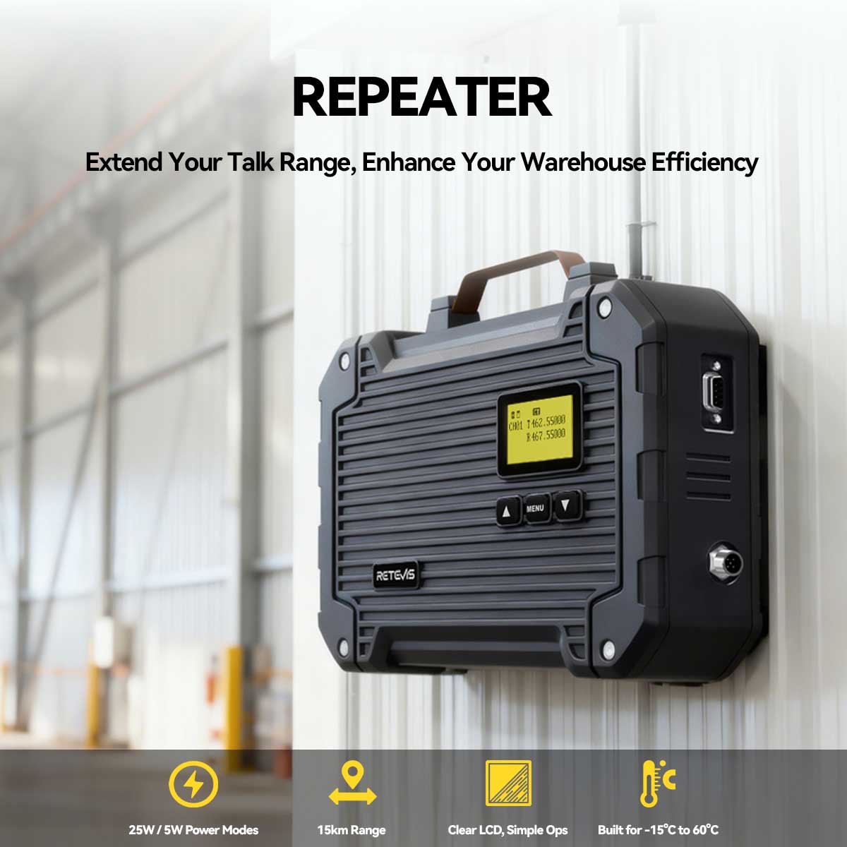 Retevis warehouse radio solutions are designed around a central repeater architecture, not point-to-point communication.