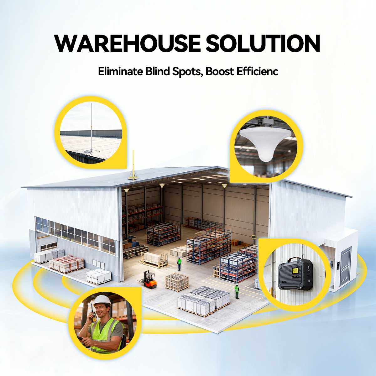 What sets this solution apart is its 100% dead-zone-free coverage. We’ve optimized the signal to eliminate blind spots in every corner of your space: from narrow aisles and stacked pallet zones to loading docks and back-office areas. Every team member, no matter their location, stays connected, ensuring smooth handoffs, faster response times, and reduced operational delays.