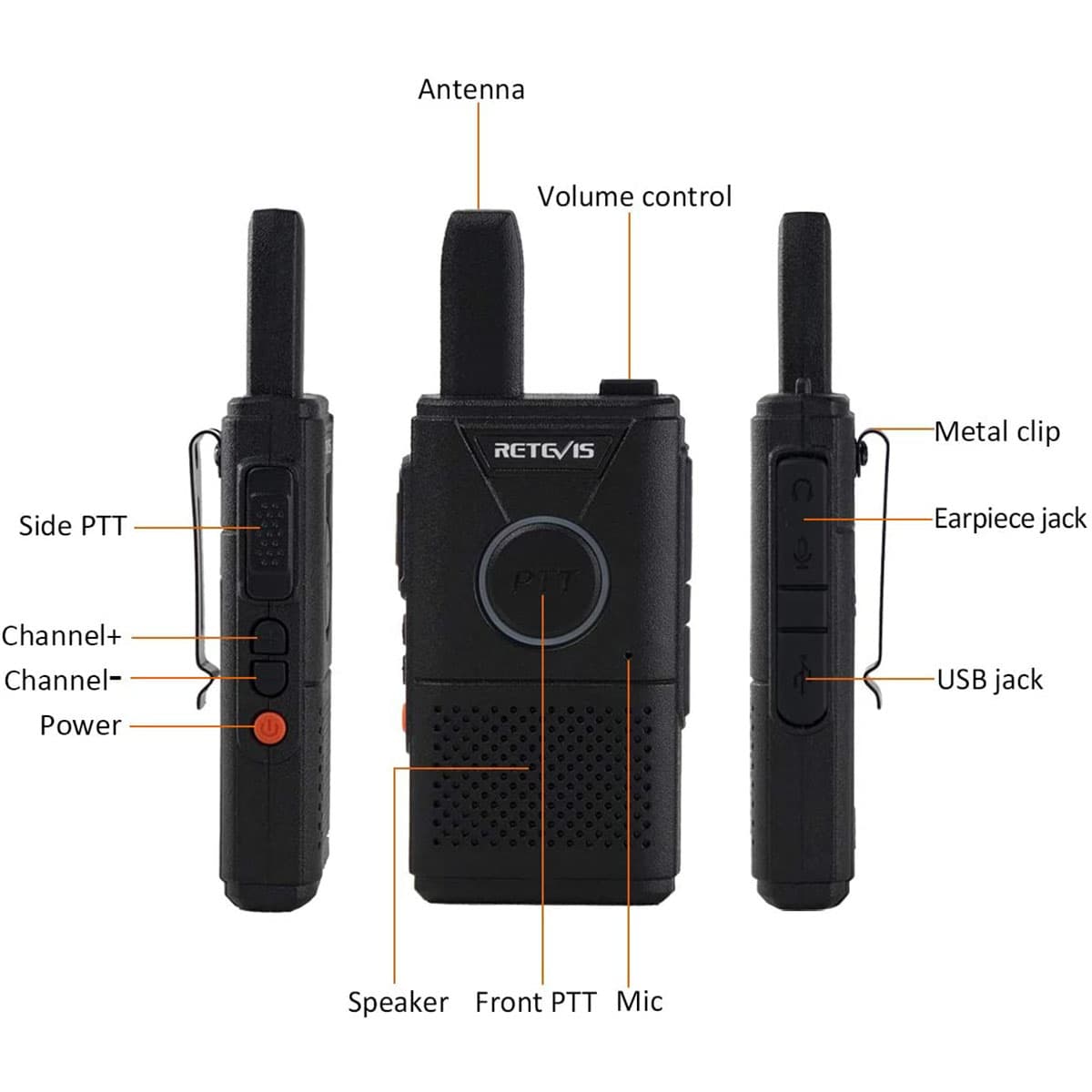 Retevis RT18 are Ultra Thin Dual PTT Walkie Talkies that are rechargeable and portable. This bundle, which includes 5-pack RT18 FRS walkie talkies and a 5-port USB rapid charger, can provide reliable communication for various situations, such as schools, daycares, hospitals, retail stores, hotels, medical institutions, etc.