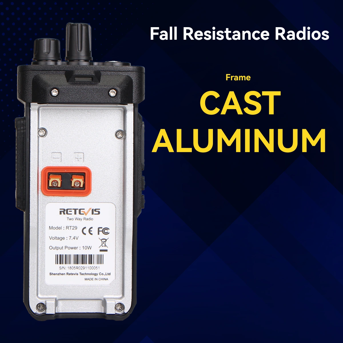 Built with a rugged aluminum alloy casing, the Retevis RT29 radio is designed to withstand 2-meter drops and the daily impacts of demanding work environments. Whether it slips from scaffolding or encounters bumps in a patrol vehicle, this radio is built to endure, significantly reducing downtime and cutting replacement costs.