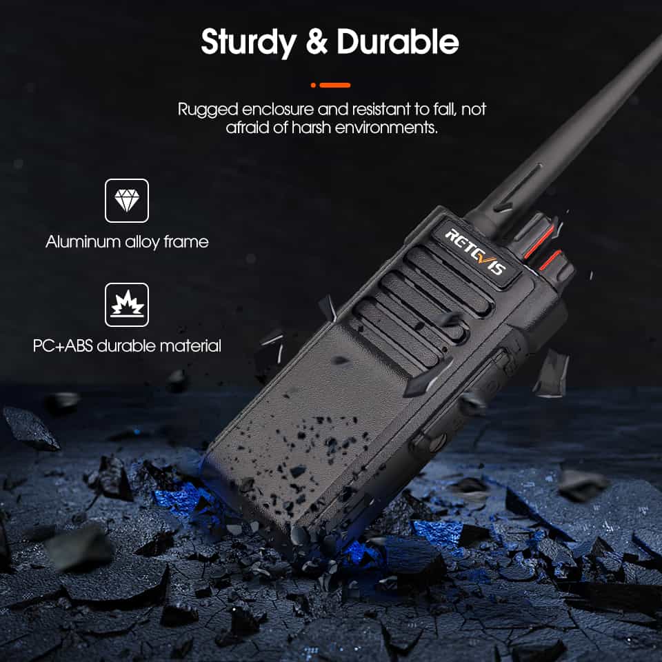 Retevis understands what worksites need. The large buttons and simple menu on this walkie talkies long range mean anyone can use it with gloves on.