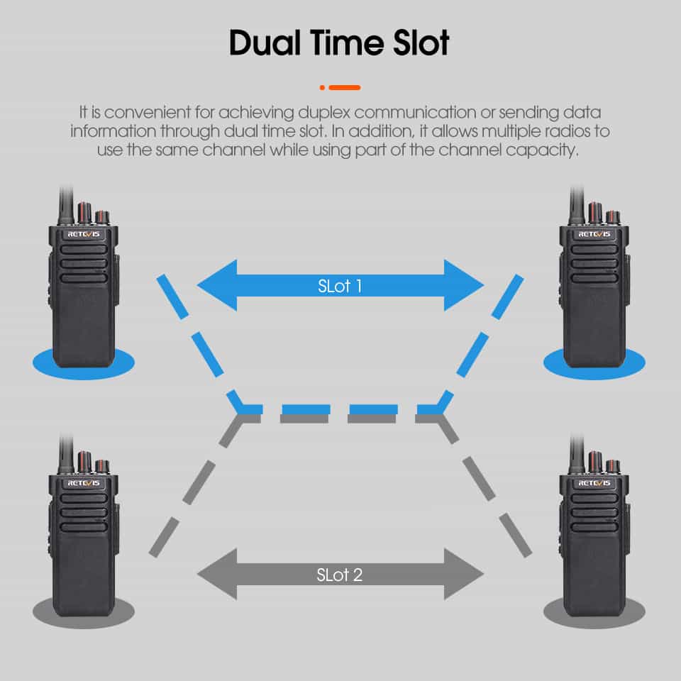 The dual time slot tech on this walkie talkie long range is brilliant. Safety and logistics teams can talk on separate channels without interference.