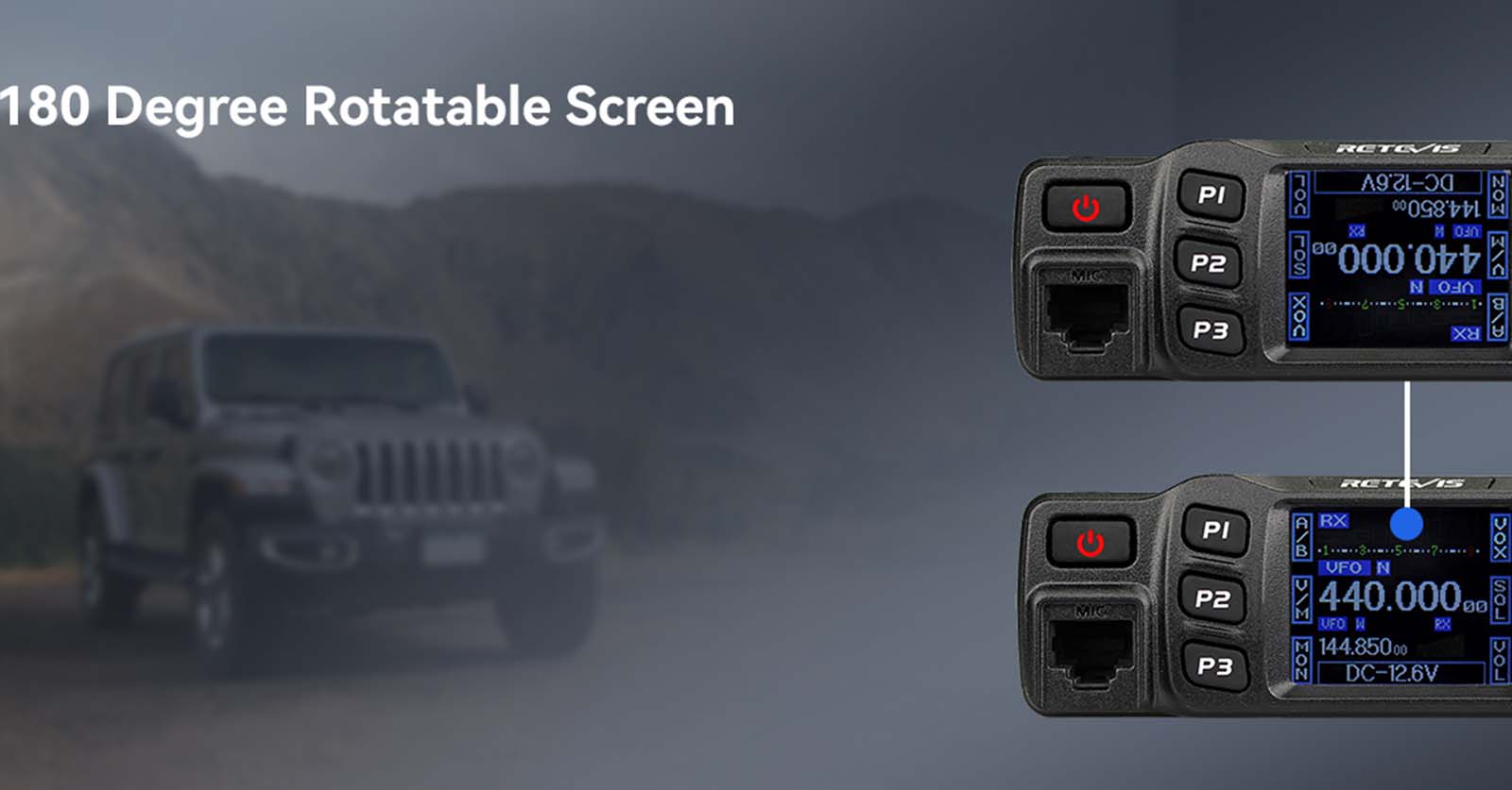 Retevis RT95 Mobile radio has 180 degree rotatable TFT LCD display, can meet the diverse usage scenarios of various vehicles such as outdoor travel, transportation, tractors, etc.